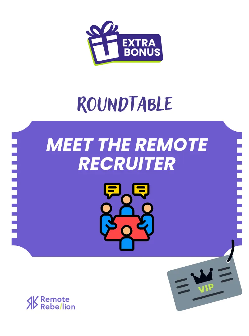 A roundtable where you will meet and have a live Q&A with REAL recruiters hiring globally for remote roles!